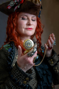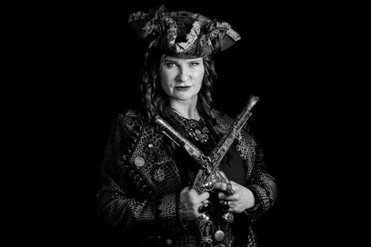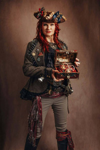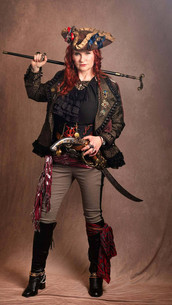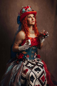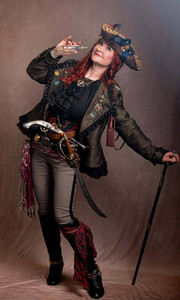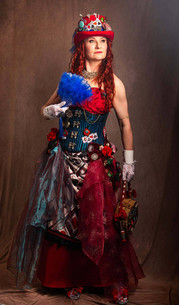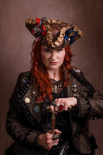 Both costumes she brought along were designed and made by herself. A pirate and the queen of hearts.